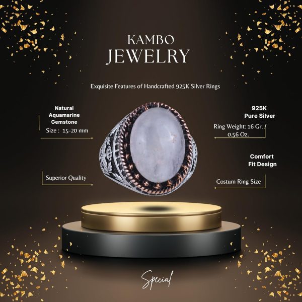 Gerçek Doğal Taş Yüzük – El Yapımı Şahin Yüzük – 925 Ayar Gümüş Yüzük (Aquamarine)