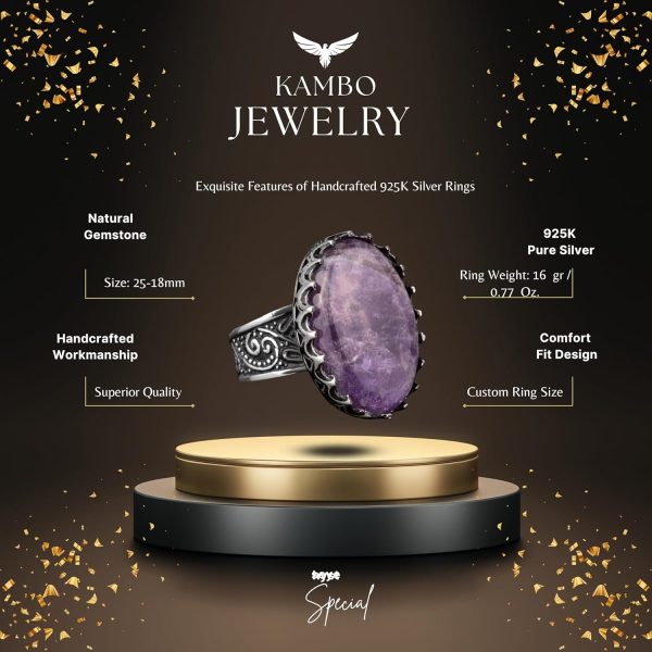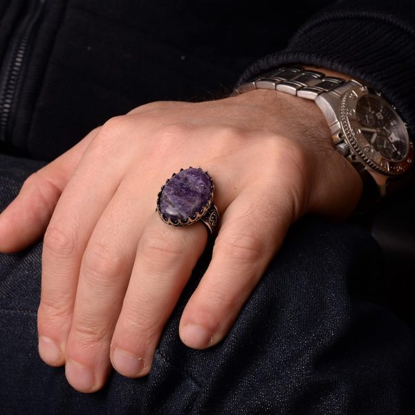 Gerçek Doğal Taş Yüzük, El Yapımı Takı, Büyük Yüzük, 925 Ayar Gümüş Yüzük Erkekler İçin