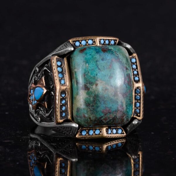 Gerçek Doğal Taş Yüzük – El Yapımı Yüzük – 925 Ayar Gümüş Yüzük (Krisokolla)
