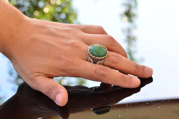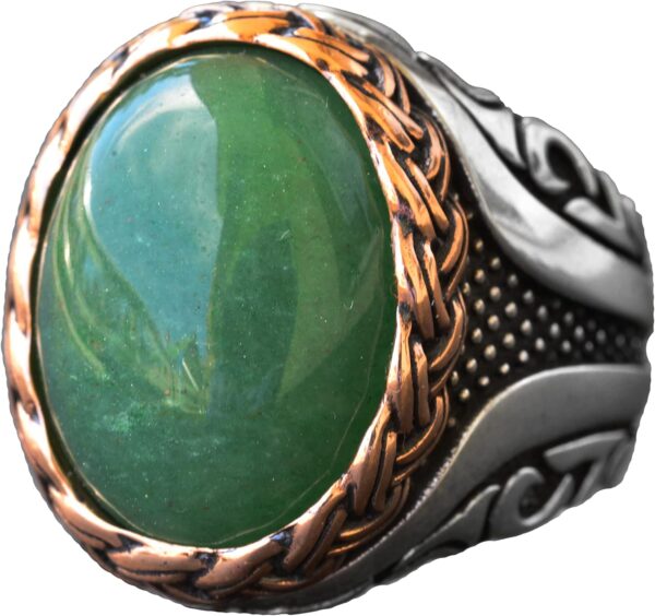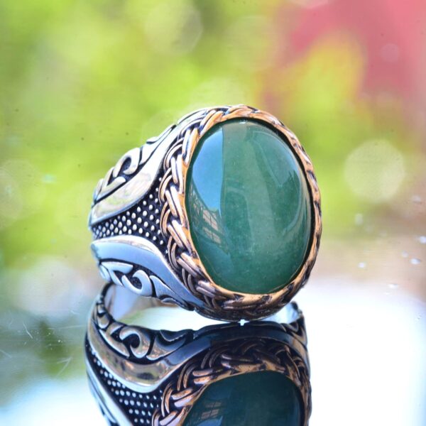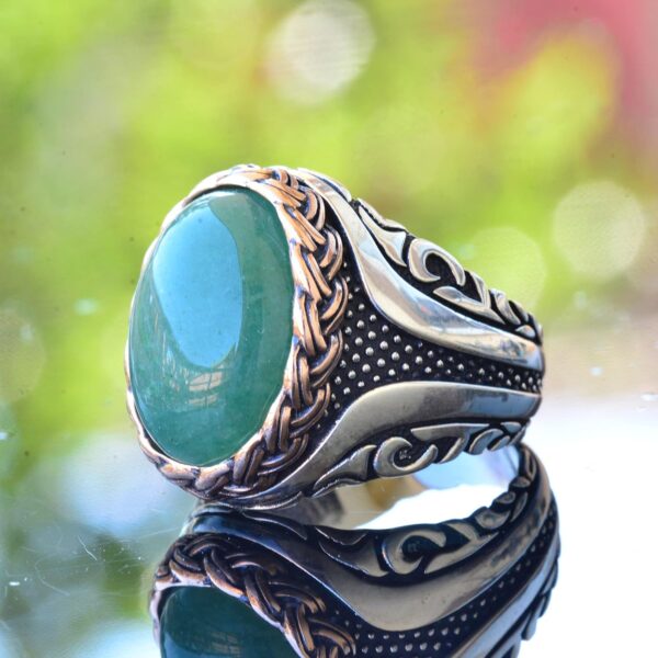 Gerçek Doğal Taş Yüzük, El Yapımı Yüzük, Yeşil Aventurin Oval Yüzük, 925 Ayar Gümüş Yüzük Erkekler İçin