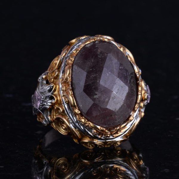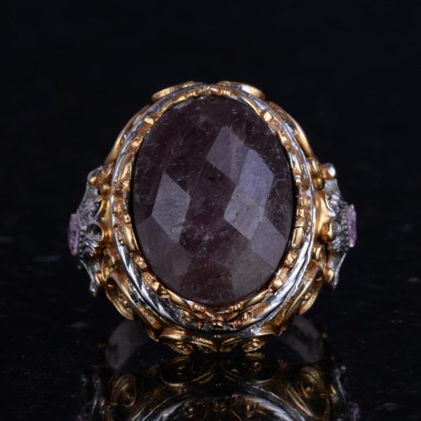 Gerçek Doğal Taş Yüzük – Erkekler için Sultan Yüzüğü – Altın Kaplama 925 Ayar Gümüş Yüzük – El Yapımı Yüzük (Kırmızı safir)