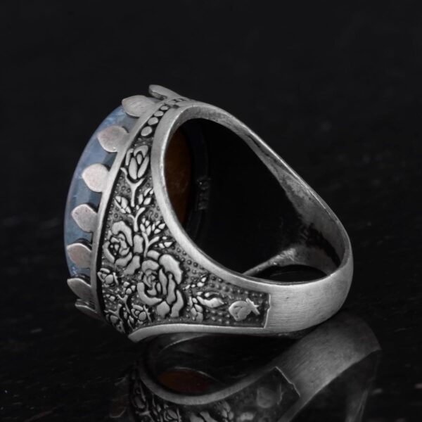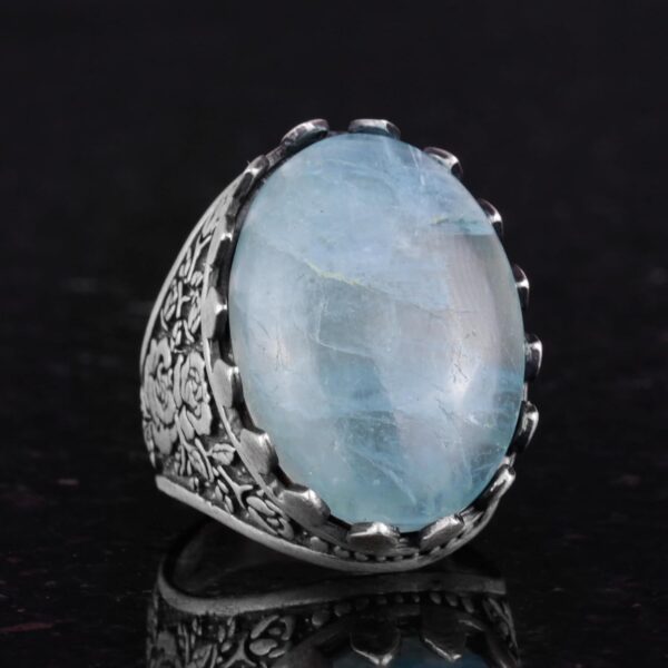 Gerçek Doğal Taş Akuamarin Yüzük – Gül Desenli Yüzük – 925 Ayar Gümüş Yüzük – El Yapımı Büyük Yüzük