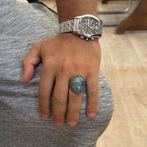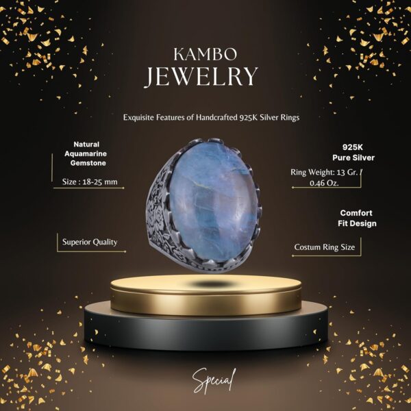 Bu yüzük, Akuamarin’in yatıştırıcı ve iletişim kurma özelliklerine değer veren erkekler için mükemmel bir hediye olup, her özel etkinlik için uygundur.
