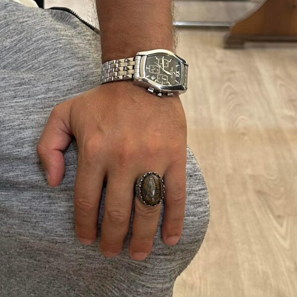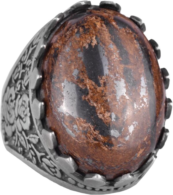 Gerçek Doğal Taş Yüzük – Gül Desenli Yüzük – 925 Ayar Gümüş Yüzük – El Yapımı Büyük Yüzük (Bronzit)