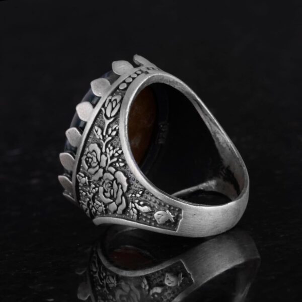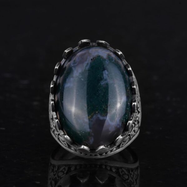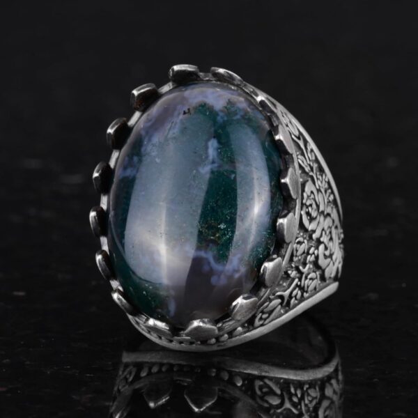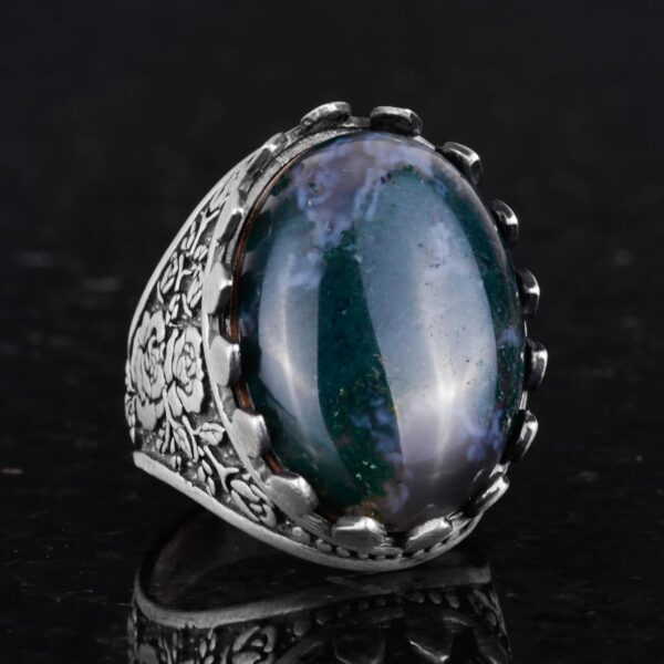 Gerçek Doğal Yosunlu Akik Taş Yüzük – Gül Desenli Yüzük – 925 Ayar Gümüş Yüzük – El Yapımı Büyük Yüzük