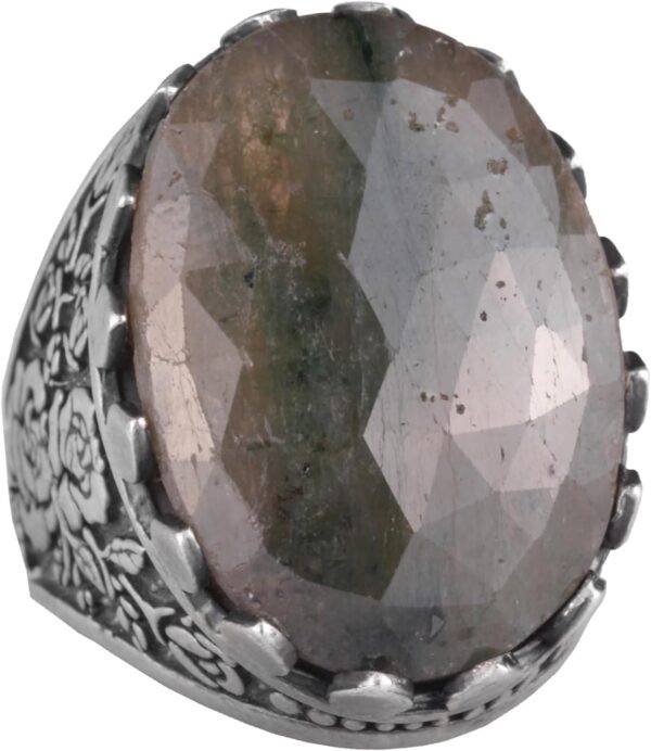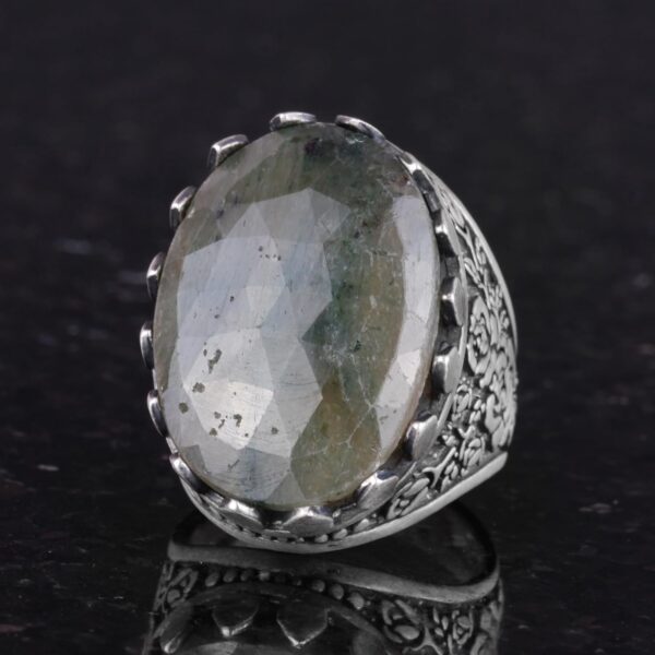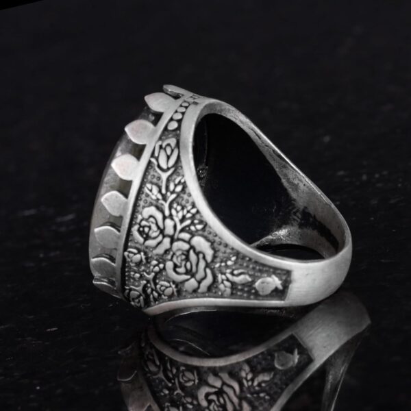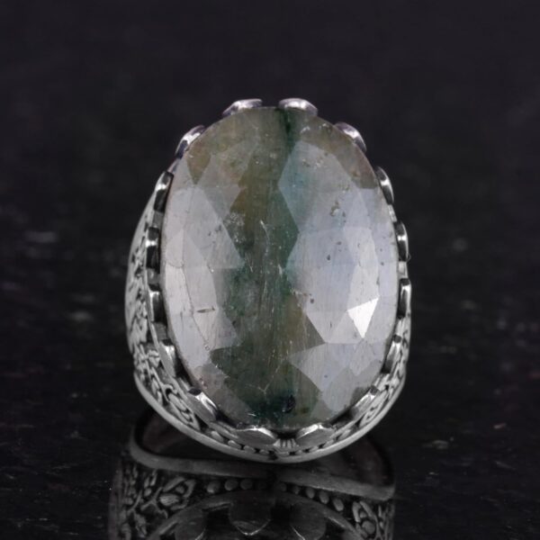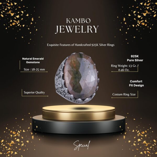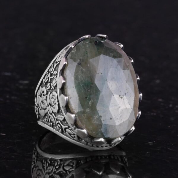 Gerçek Doğal Taş Yüzük – Gül Desenli Yüzük – 925 Ayar Gümüş Yüzük – El Yapımı Büyük Yüzük (Zümrüt)