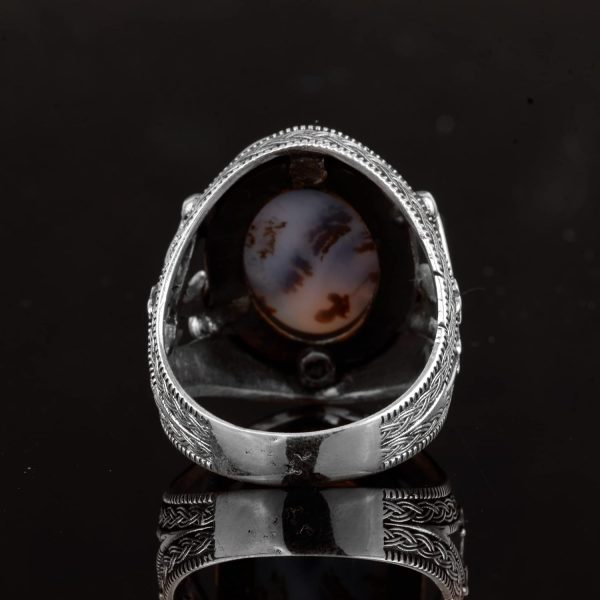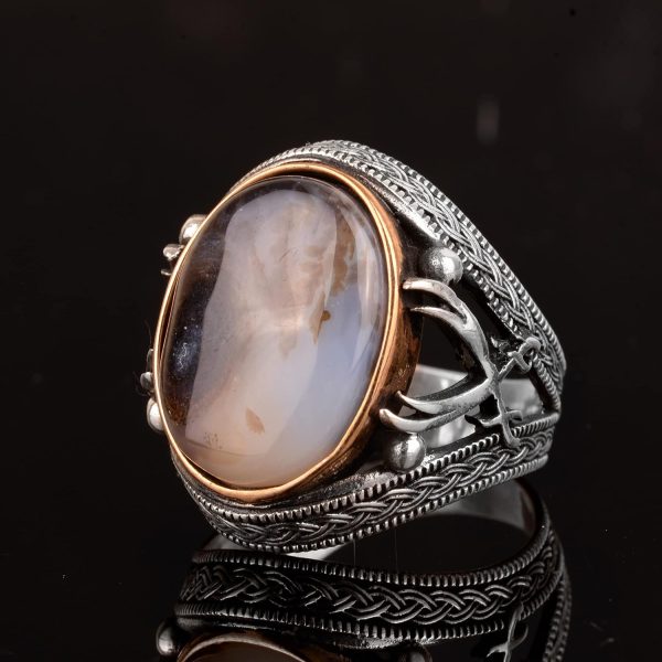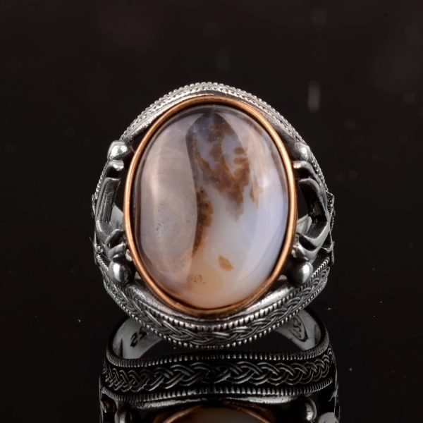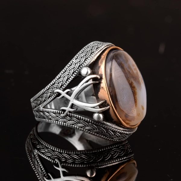 Doğal Yemen Agatı Taşlı El Yapımı Gümüş Erkek Yüzük – Kılıç Tasarımı