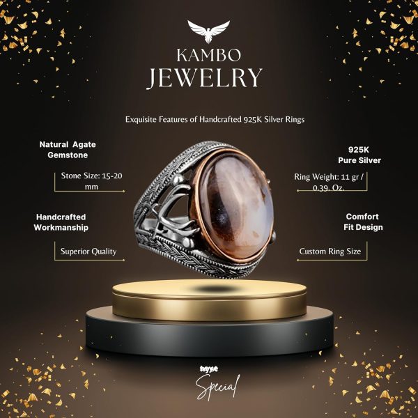 Bu el yapımı erkek yüzük, dayanıklılık özellikleri ve kendine has, toprak tonlarıyla değerli bir taş olan gerçek Yemen Agatı taşını içermektedir. Yemen Agatı’nın güç ve koruma sağladığına inanılmaktadır, bu da onu her takı koleksiyonuna anlamlı bir ek haline getirir.