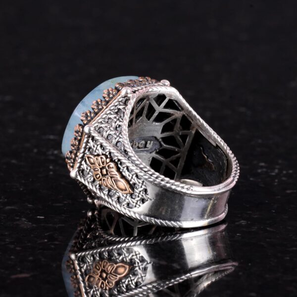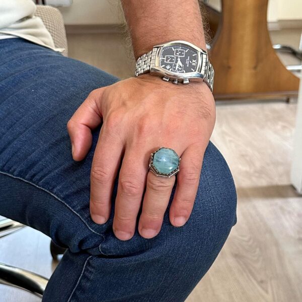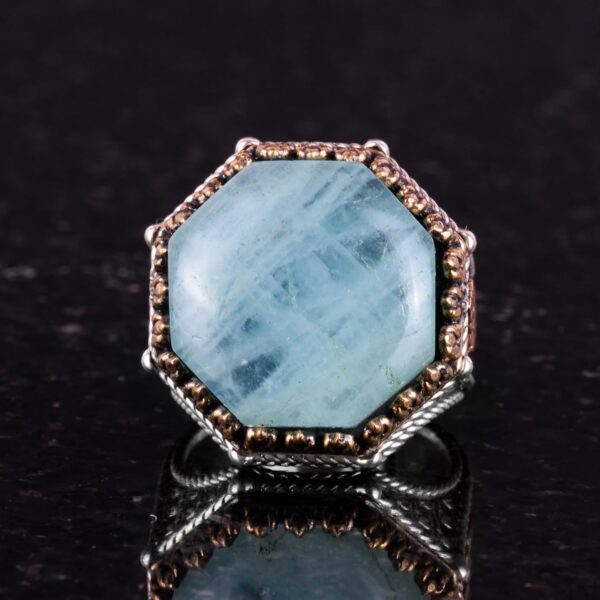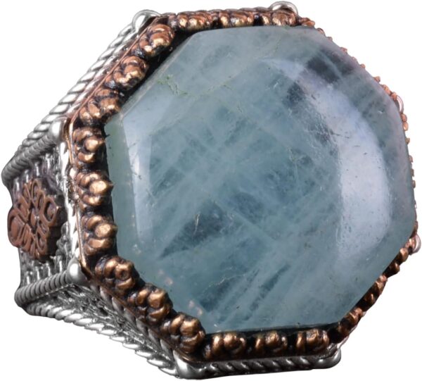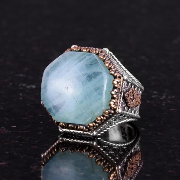 Gerçek Doğal Taş Yüzük – Sekizgen Tasarım – El Yapımı 925 Ayar Gümüş Takı (Akuamarin)