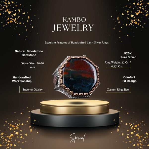 • Eşsiz Sekizgen Tasarım: Bu el yapımı yüzük, 925 ayar gümüş içine yerleştirilmiş çarpıcı sekizgen şekilli gerçek yeşil kan taşı taşına sahiptir, böylece tek bir parça takı sunar.