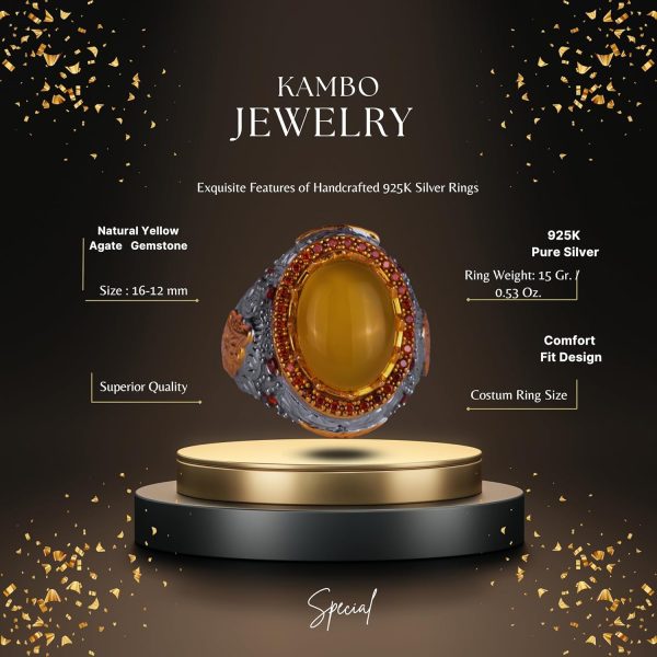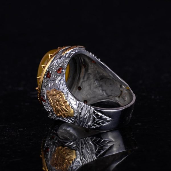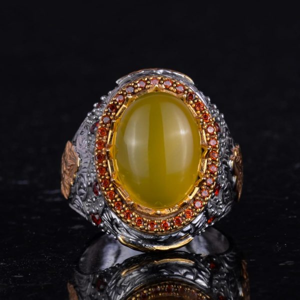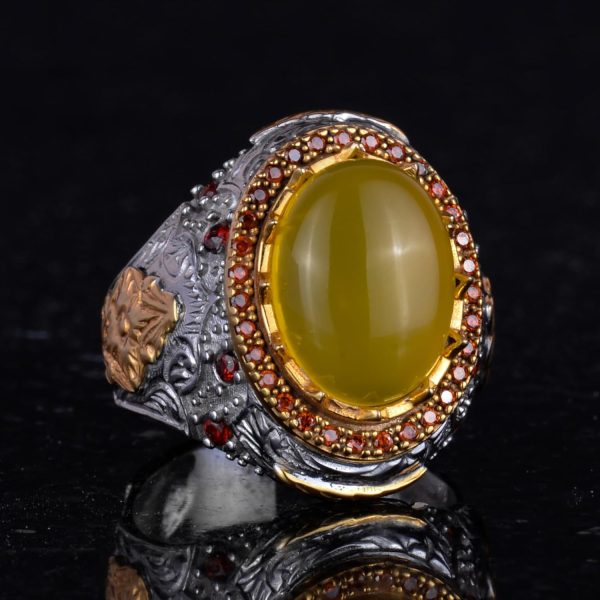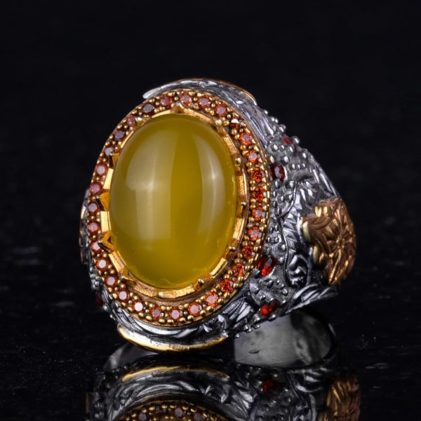 Gerçek Doğal Taş Yüzük – Sultan Yüzük – 925 Ayar Gümüş Yüzük Erkekler İçin (Sarı akik)