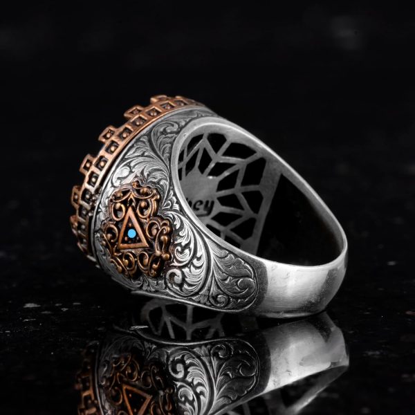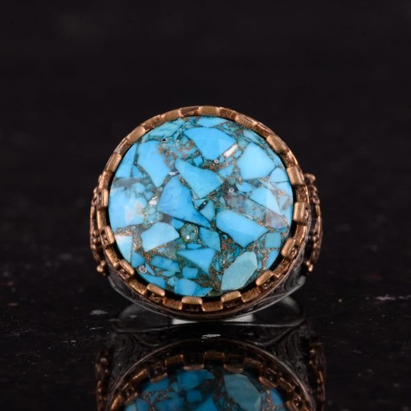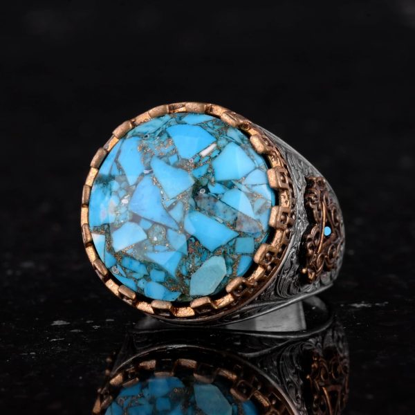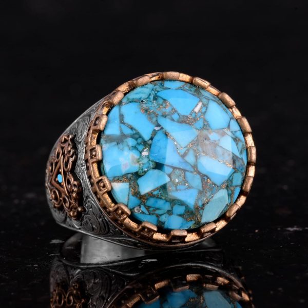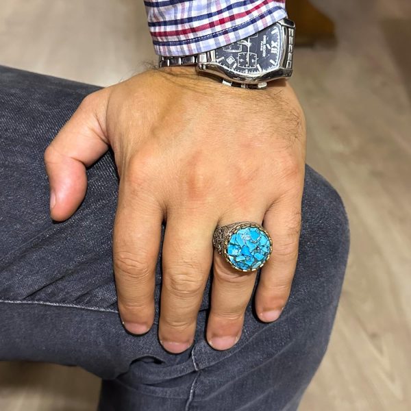 Gerçek Doğal Turkuaz Taşlı Gümüş Erkek Yüzük – Vintage Tasarım