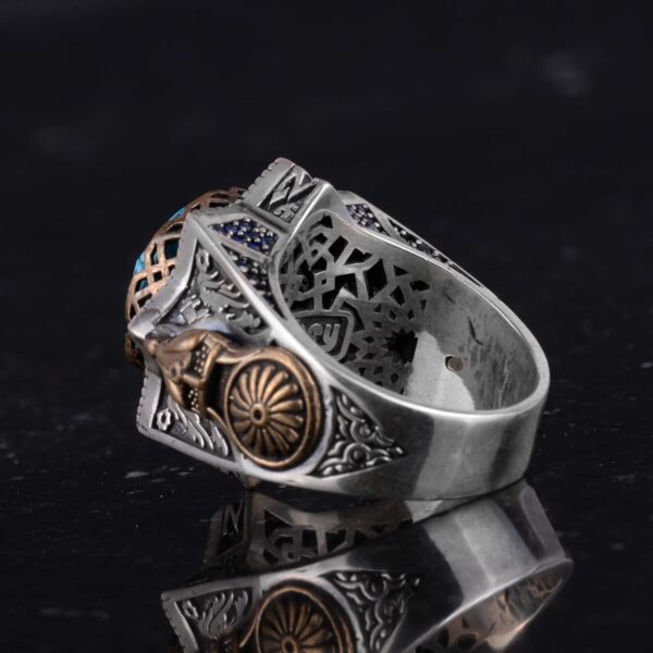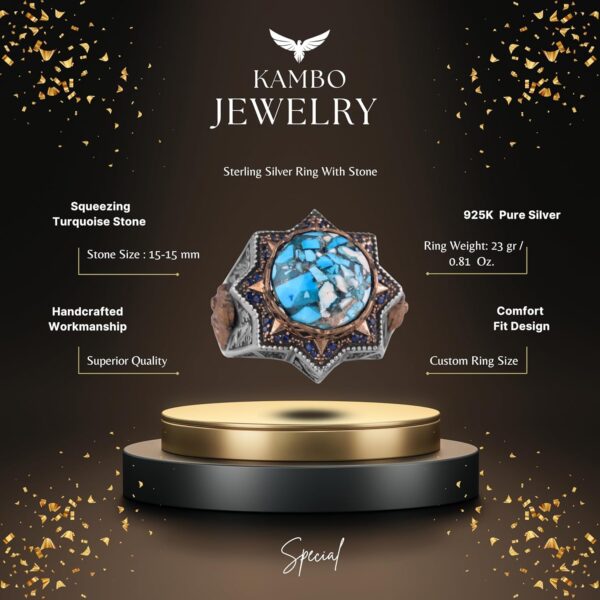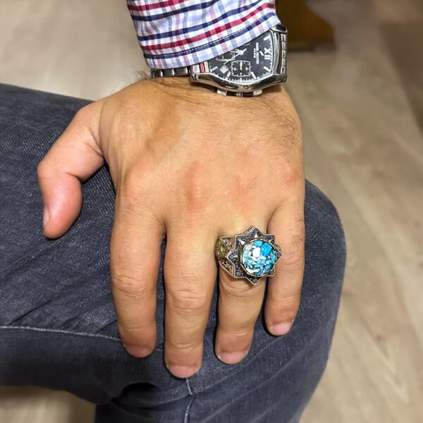 Gerçek Doğal Turkuaz Taşlı Gümüş Erkek Yüzük, Yıldız İlhamlı Tasarım