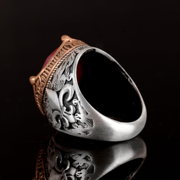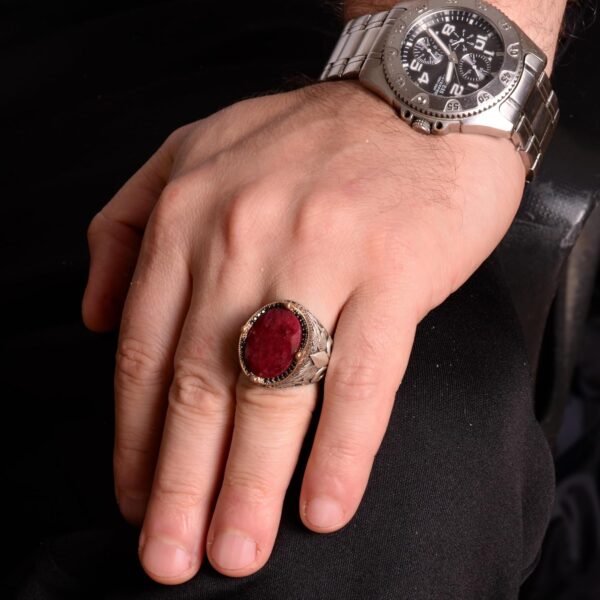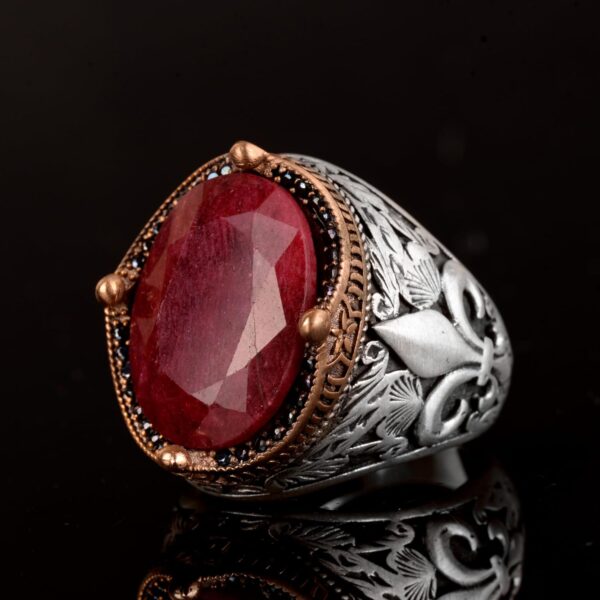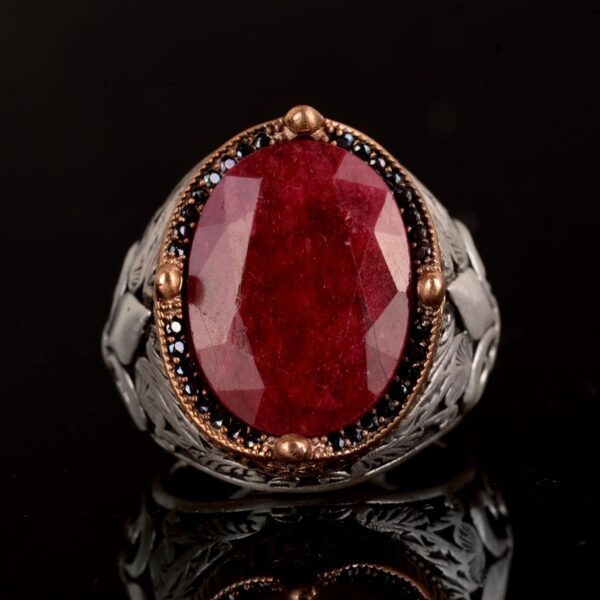 Gerçek Doğal Yakut Taşlı Yüzük, Osmanlı Sembol Yüzük, 925K Gümüş Erkek Yüzük Ağırlığı: 17.51gr