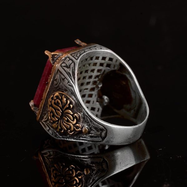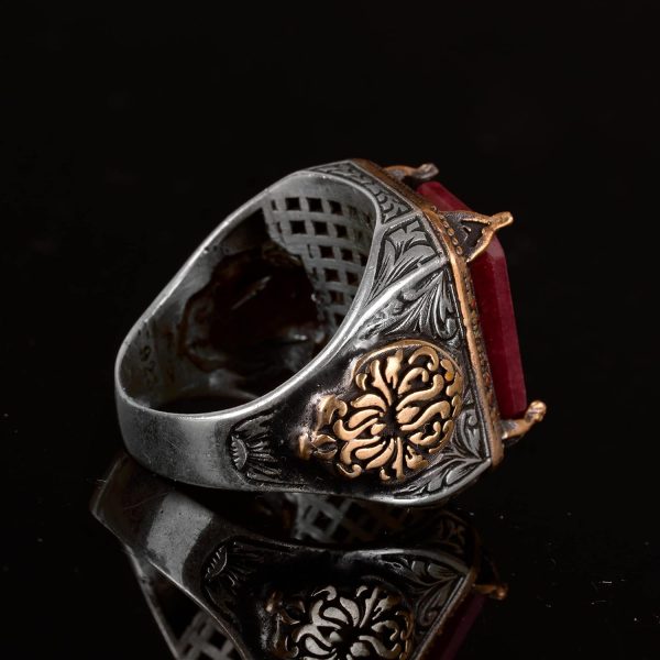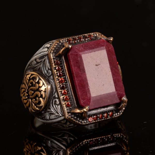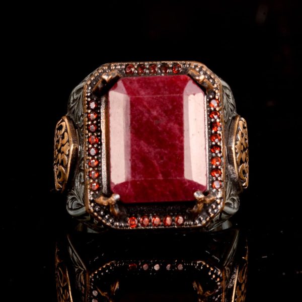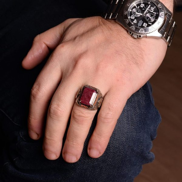 Gerçek Doğal Yakut Taşlı Erkek Yüzük, El Yapımı Kral Yüzüğü, 925 Ayar Gümüş Yüzük Erkekler İçin