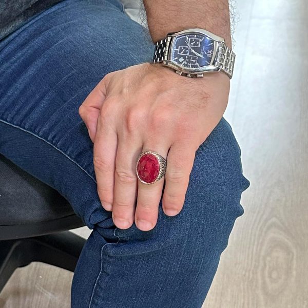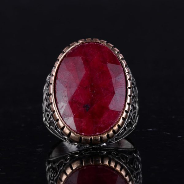Gerçek Doğal Yakut Taşlı Yüzük, 925 Ayar Katı Gümüş Yüzük Erkekler İçin, Büyük Yüzük