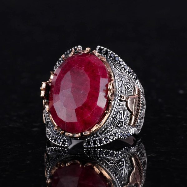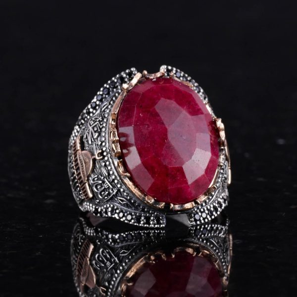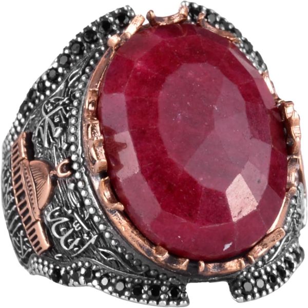 Gerçek Doğal Yakut Taşlı Yüzük, Camii Gümüş Yüzük, 925 Ayar Sterlin Gümüş Yüzük