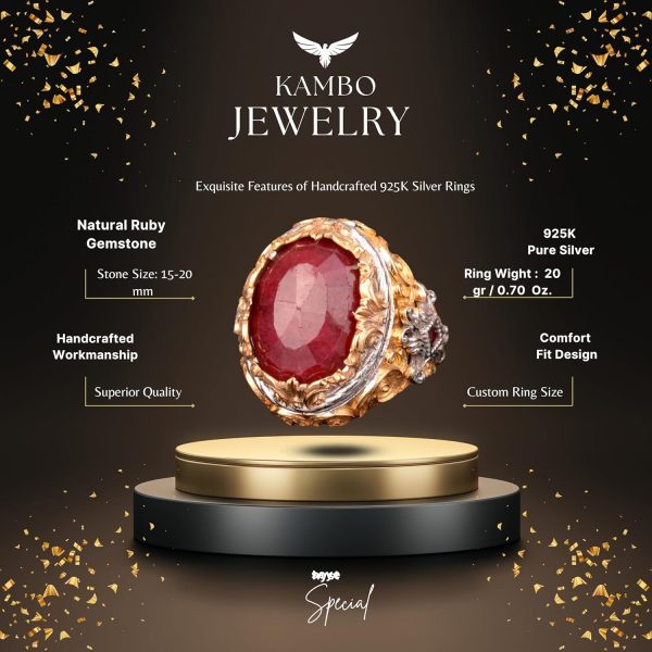 Gerçek Doğal Yakut Taşlı Yüzük, Doğum Taşı Yüzüğü, Gerçek Taş Yüzük, Sterlin Gümüş Yüzük
