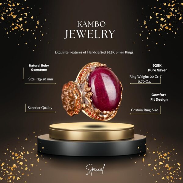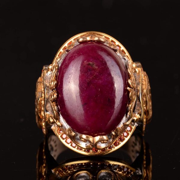 Gerçek Doğal Yakut Taşlı Yüzük, Kral Yüzüğü, 925 Ayar Gümüş Yüzük