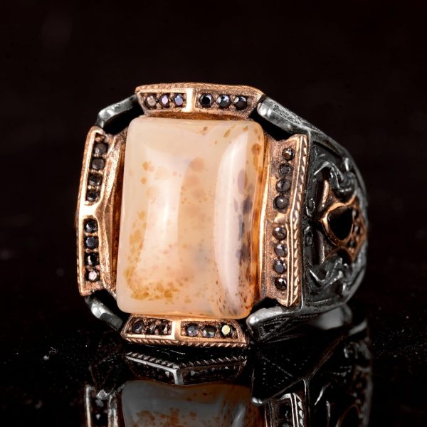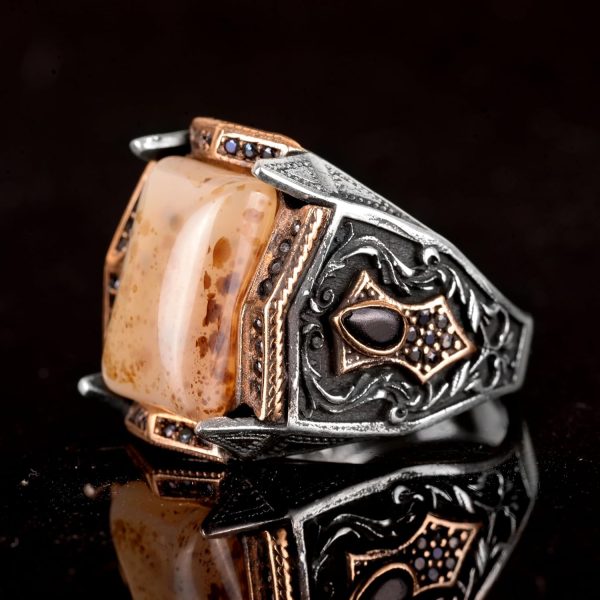 Gerçek Doğal Yemen Akik Taşı Yüzük – 925 Ayar Gümüş Yüzük