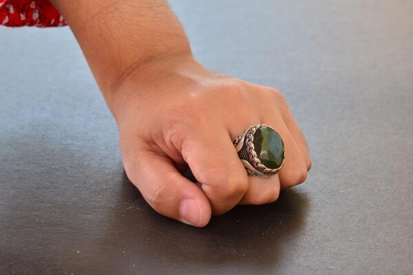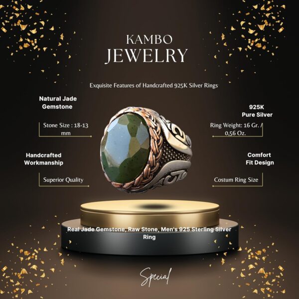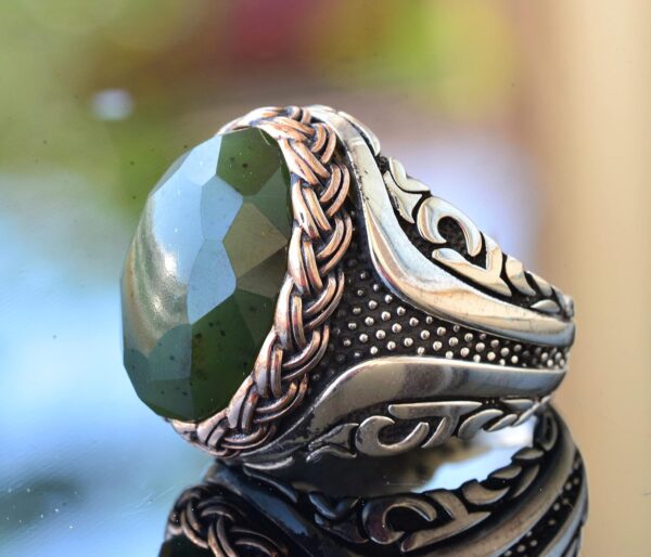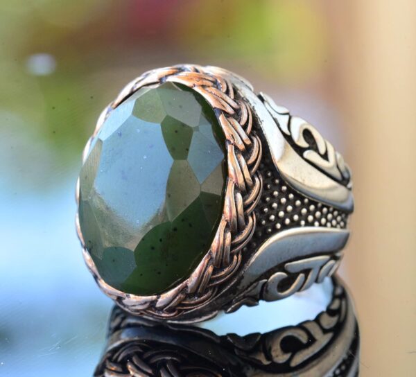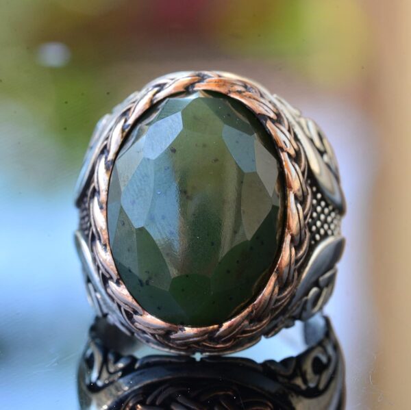 Gerçek Doğal Yeşil Jade Taşı Yüzük – 925 Ayar Gümüş Erkek Yüzüğü – Eşsiz Tasarım