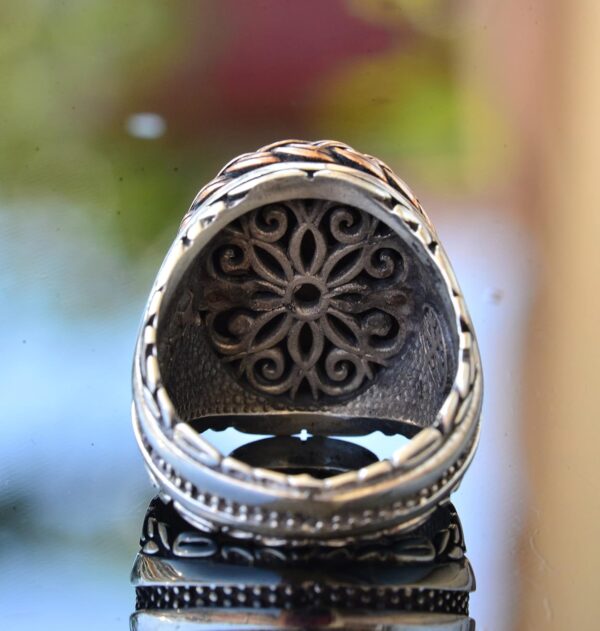 Ayrıntılı işçilik ve karmaşık desenler, bu yüzüğü herhangi bir takı koleksiyonunda benzersiz bir parça haline getirir. İster resmi bir etkinliğe katılıyor olun, ister günlük kıyafetinize bir dokunuş katmak isteyin, bu yüzük her duruma uygun çok yönlü bir aksesuardır.