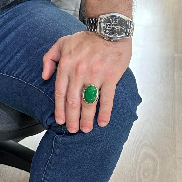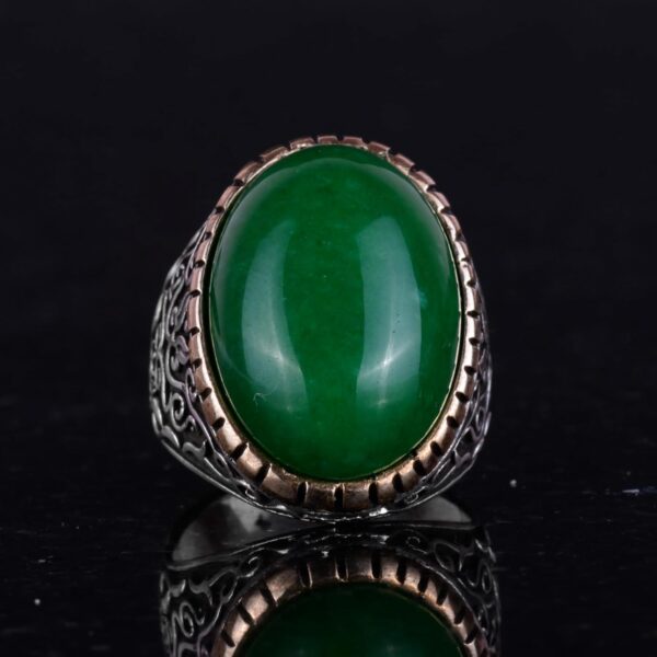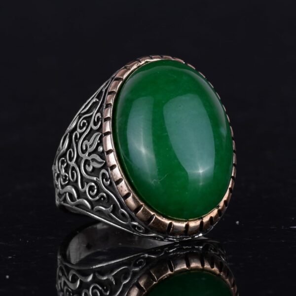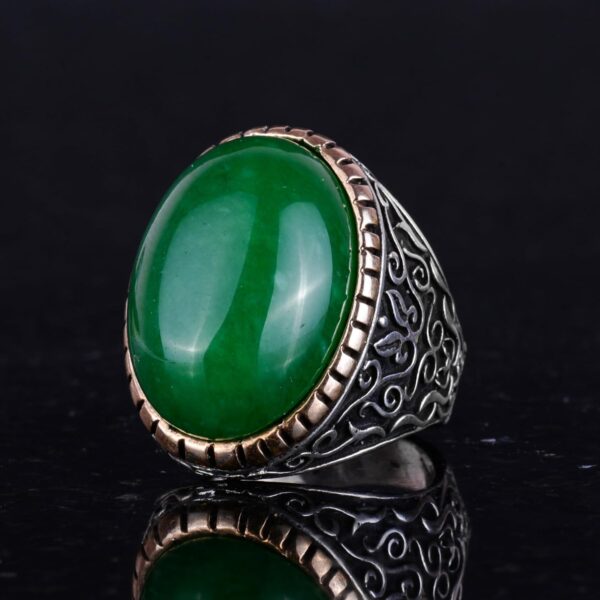 Gerçek Doğal Yeşim Taşı Yüzük, Şifa Veren 925 Ayar Katı Gümüş Erkek Yüzük, Sultan Yüzük, Huzur ve İçgörü Tasarımı