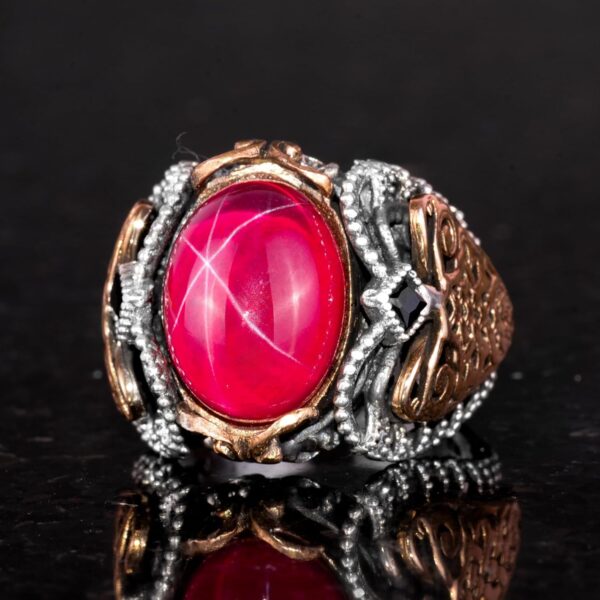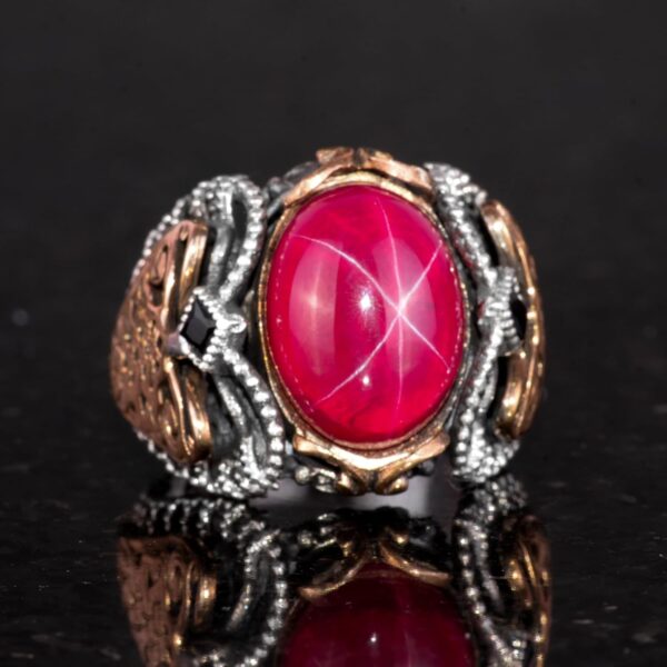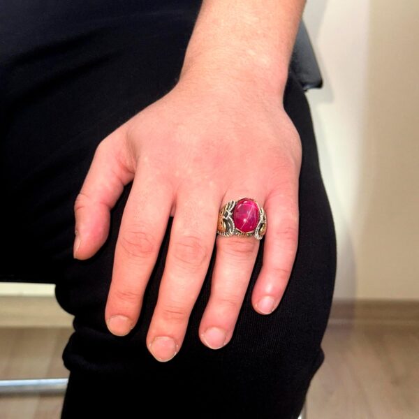 Gerçek Doğal Yıldız Yakut Taşlı Yüzük, 925 Ayar Gümüş Erkek Yüzük