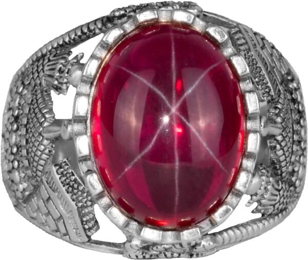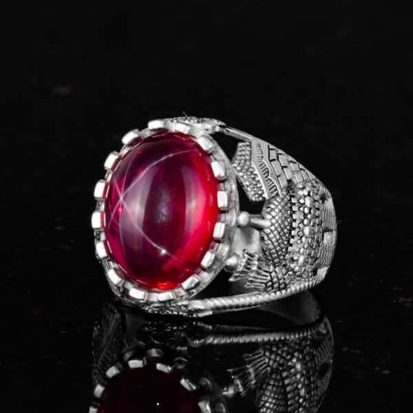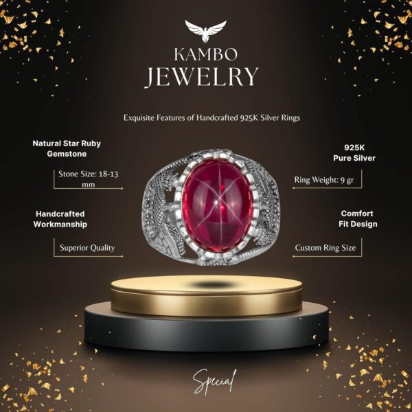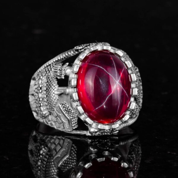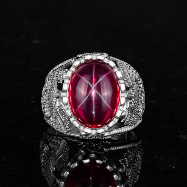 Gerçek Doğal Yıldız Yakut Taşlı Yüzük, 925 Ayar Gümüş Erkek Yüzük
