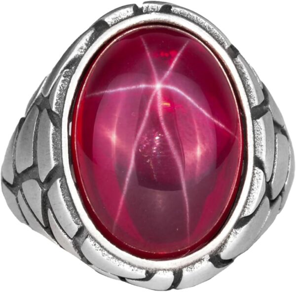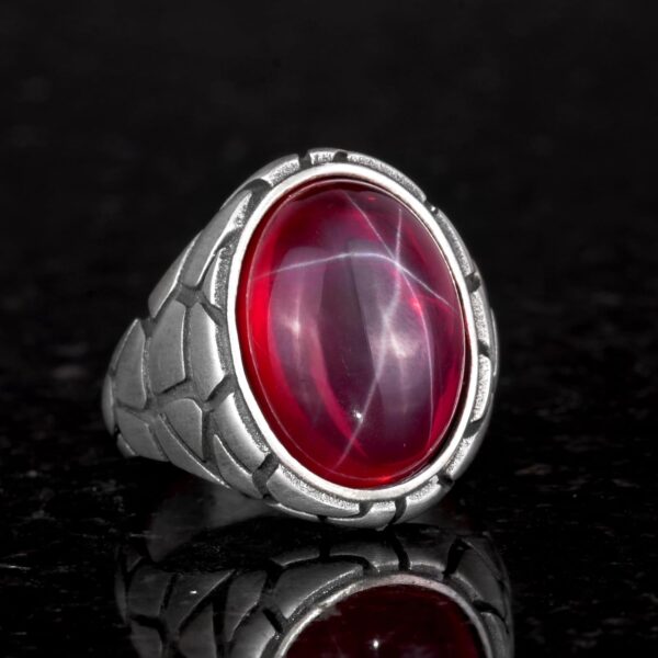 Gerçek Doğal Yıldız Yakut Taşlı Yüzük, 925 Ayar Sert Gümüş Yüzük, El Yapımı Erkek Yüzüğü