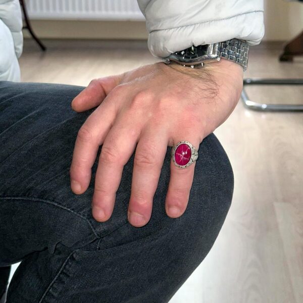 Gerçek Doğal Yıldız Yakut Taşlı Yüzük, Sultan Yüzüğü, El Yapımı Kral Yüzüğü, 925 Ayar Gümüş Yüzük. Ağırlık: 11.32 gr Taş Karatı: 5.51ct