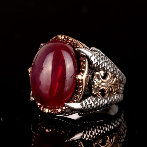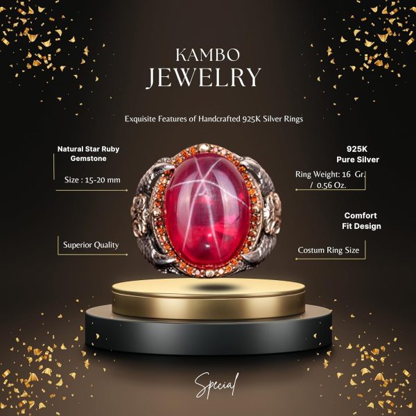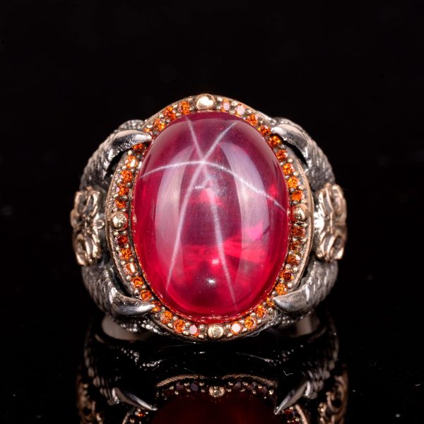 Gerçek Doğal Yıldız Yakut Taşlı Yüzük, Pençe Yüzük, 925 Ayar Gümüş Yüzük