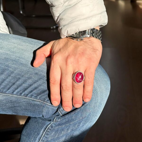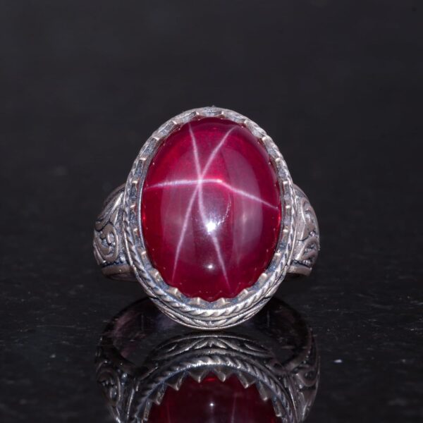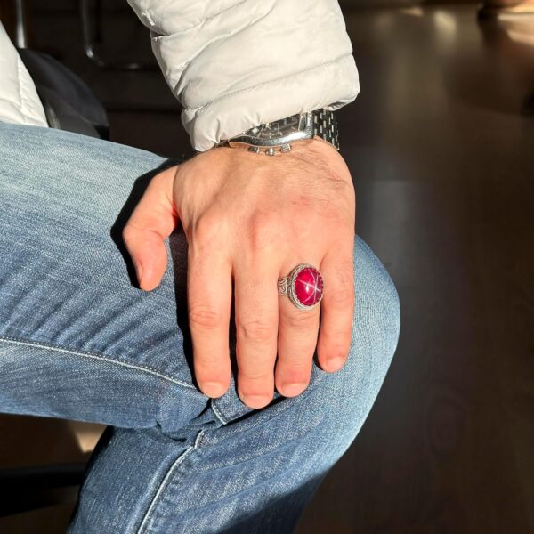 Gerçek Doğal Yıldız Yakut Taşlı Yüzük, El Yapımı Kral Yüzüğü, 925 Ayar Gümüş Yüzük.