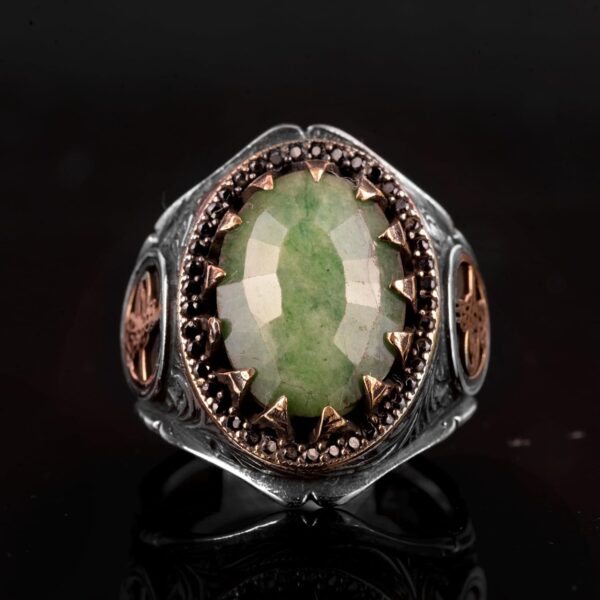 Gerçek Doğal Zümrüt Taşlı Erkek Yüzük, Osmanlı Yüzüğü, Orta Doğu Etkili Tasarım, 925K Gümüş Yüzük