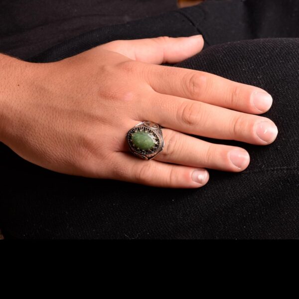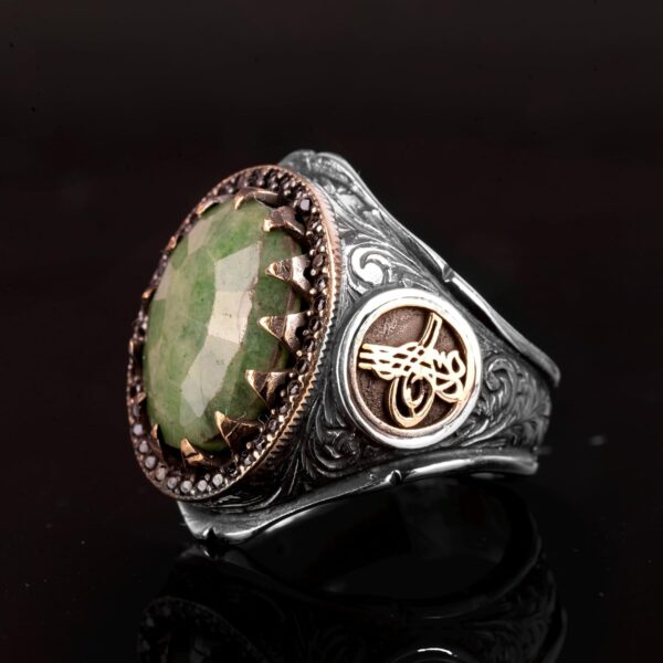 Gerçek Doğal Zümrüt Taşı Erkek Yüzük, Osmanlı Yüzüğü, Orta Doğu Etnik Tasarım, 925 Ayar Gümüş Yüzük