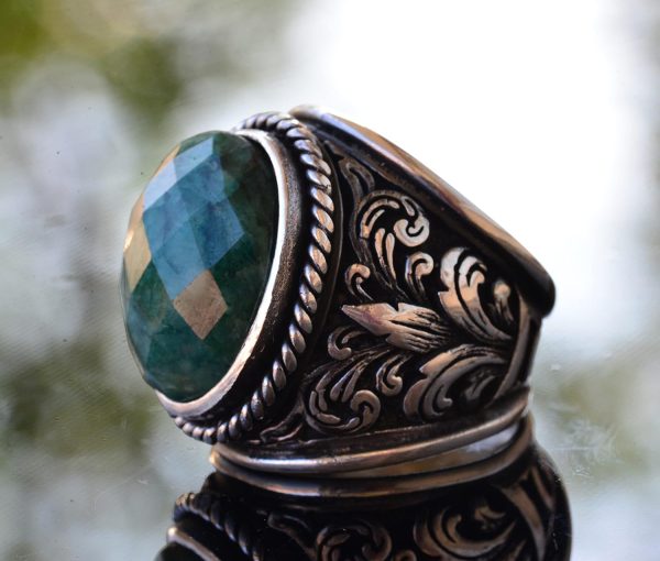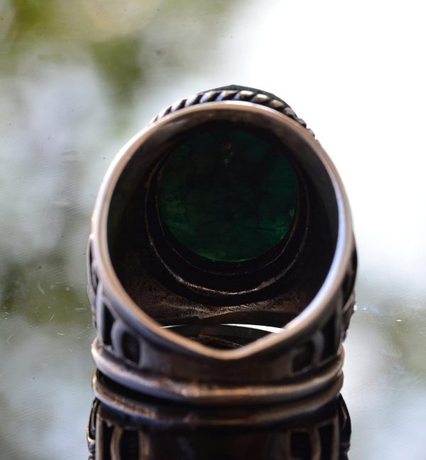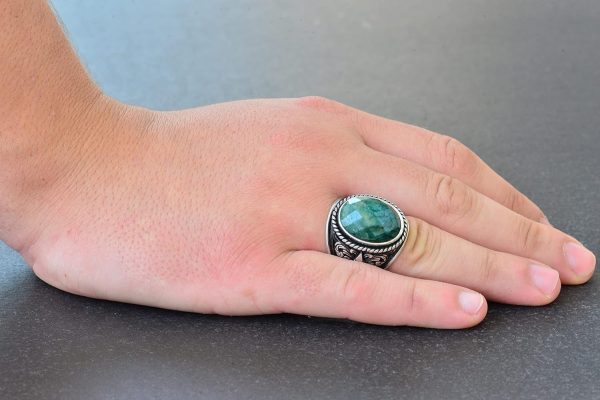 Gerçek Doğal Zümrüt Taşı Yüzük – Gümüş Erkek Yüzüğü
