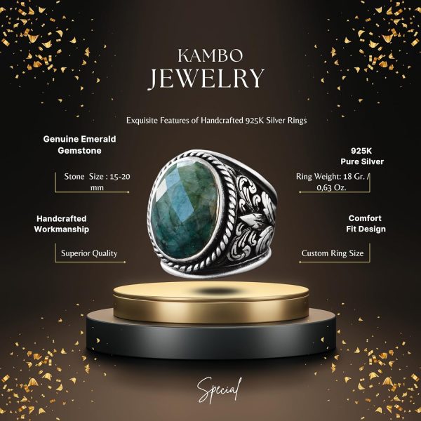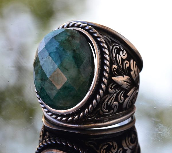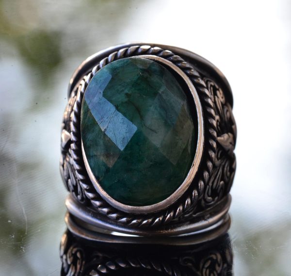 Gerçek Doğal Zümrüt Taşı, Zümrüt Yüzük, Gümüş Erkek Yüzüğü, Yeşil