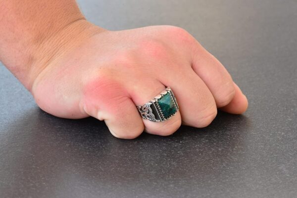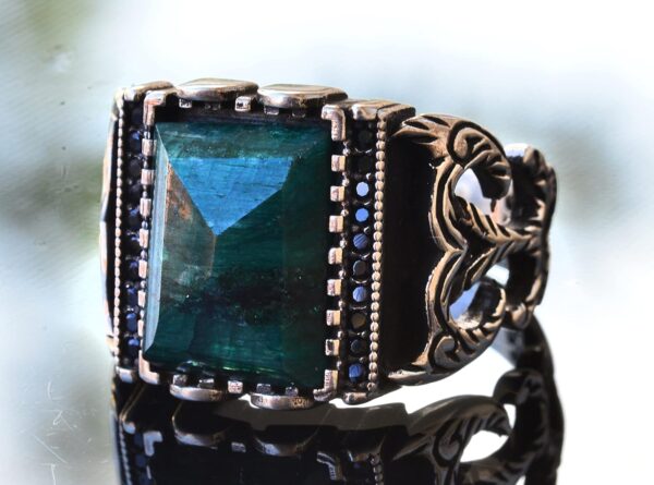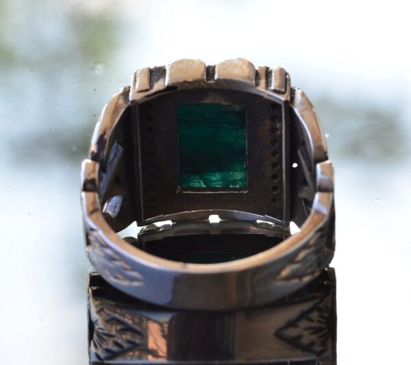 Gerçek Doğal Zümrüt Dikdörtgen Taş Yüzük – Gümüş Erkek Yüzüğü