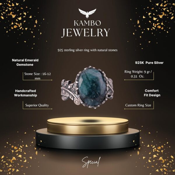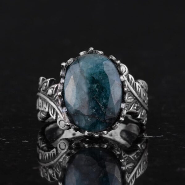 Zümrüt, geleneksel olarak aşk, bilgelik ve refah ile ilişkilendirilen bir taş olduğundan, bu yüzük sadece güzel bir aksesuar değil, aynı zamanda bu niteliklerin anlamlı bir sembolüdür. Vintage tasarım, el yapımı, eşsiz takıları sevenler için mükemmel bir sanatsal dokunuş katmaktadır.
