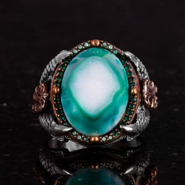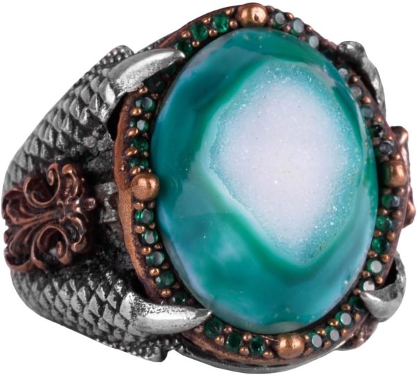 Güç Simgesi: Kartal pençesi tasarımı, güç, özgürlük ve vizyonun zamansız bir sembolüdür. Parlak druzy kuvars taşı ile birleştiğinde, bu yüzük bu güçlü özellikleri temsil eder ve kişisel güç ve netlik arayanlar için mükemmel bir seçimdir.