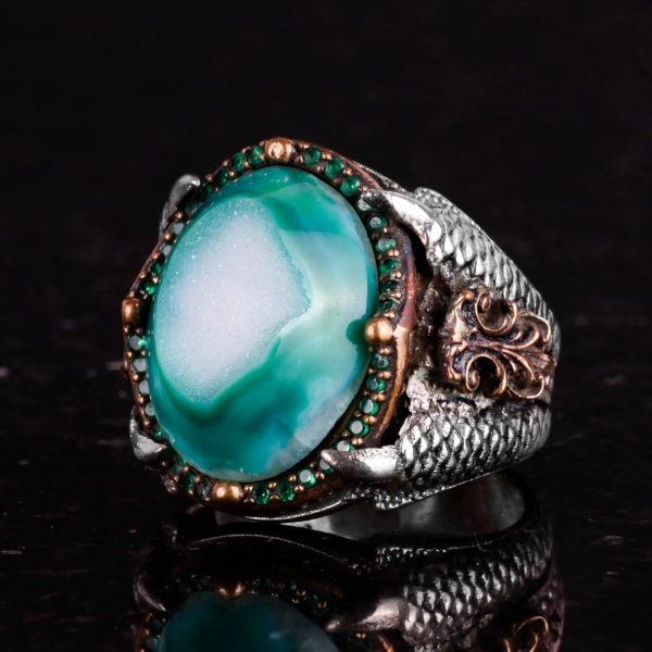 “Erkekler için Yeşil Turkuaz Taş Yüzük, 925 Ayar Gümüş Vintage Tasarım” sepetinize eklendi.