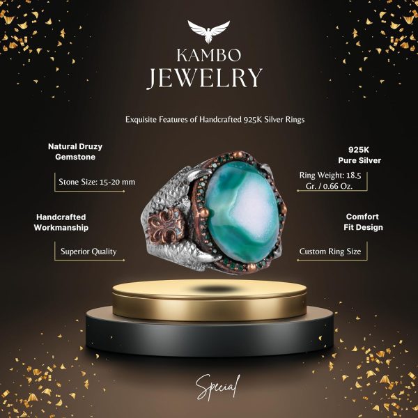 Özgün Tasarım: KAMBO, 925 ayar gümüş içerisinde yer alan gerçek druzy kuvars taşlı, etkileyici bir kartal pençesi temalı yüzük sunuyor. Bu yüzük, cesur ve benzersiz takı parçalarını seven erkekler için mükemmel bir seçenektir.
