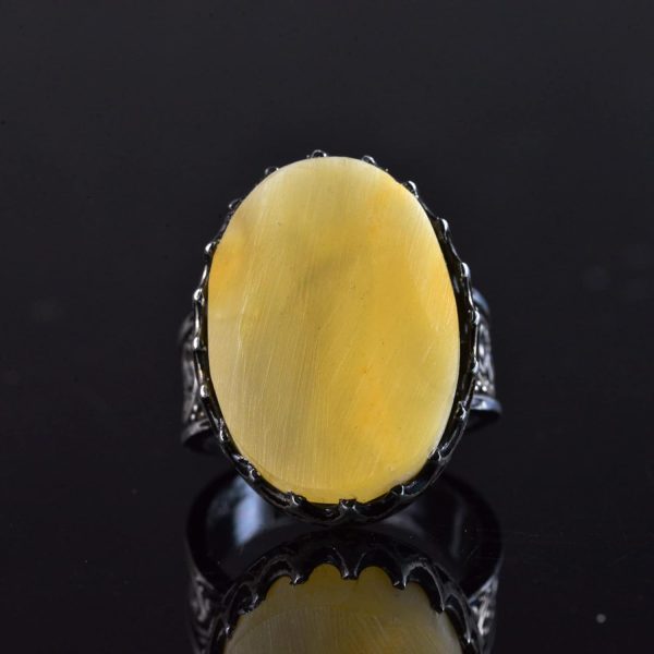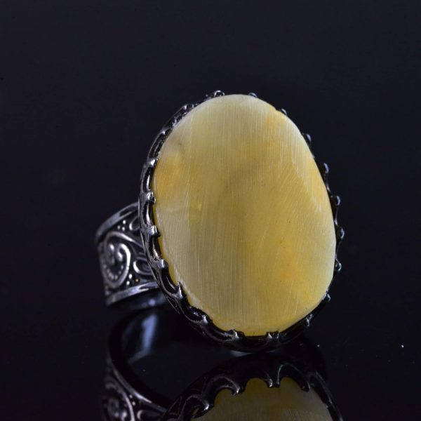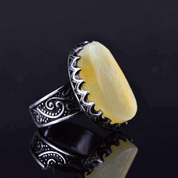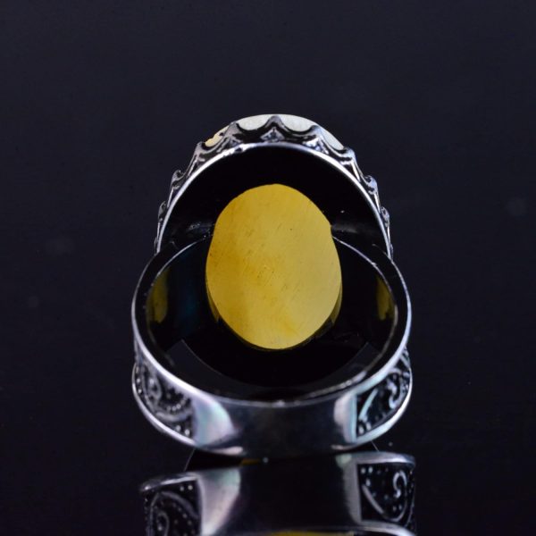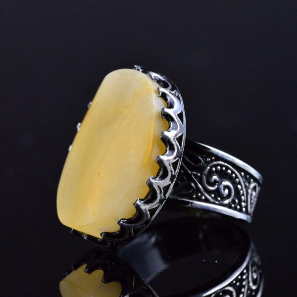 Gerçek Ham Amber Taş Yüzük, El Yapımı Gümüş Yüzük, 925 Ayar Gümüş Erkek Yüzüğü