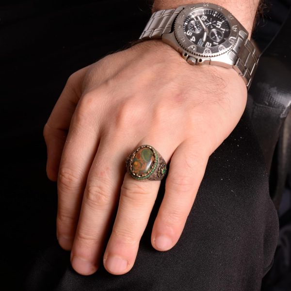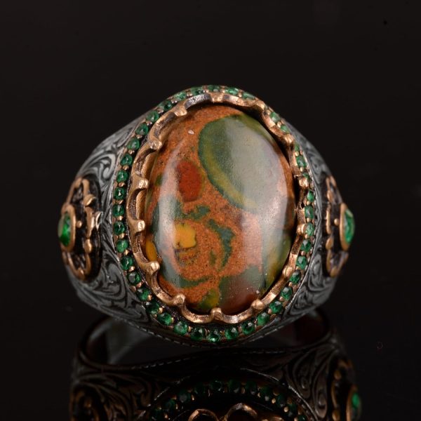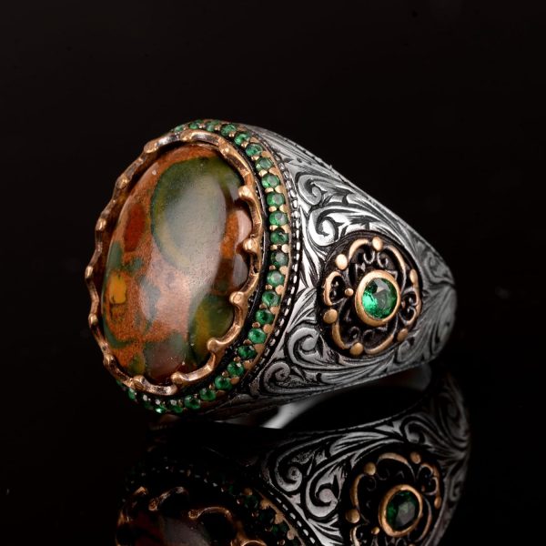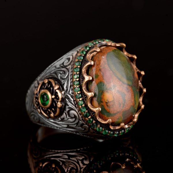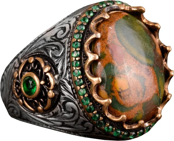 925 Ayar Gümüş Erkek Yüzük, Doğal Kan Taşı Doğal Taş, Eşsiz El Yapımı Gümüş Yüzük Ağırlık: 11.84 gr