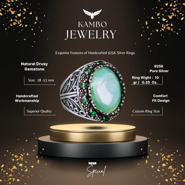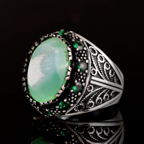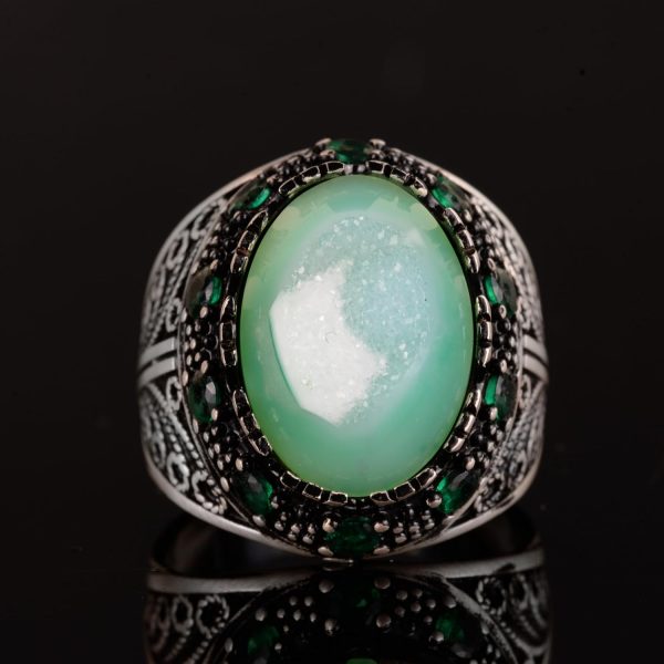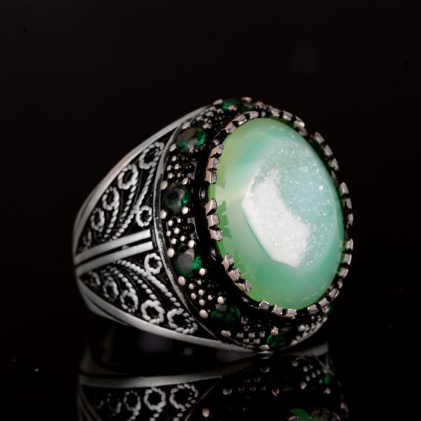 Gerçek Kristal Drusy Kuvars Taş Yüzük, 925 Ayar Gümüş Erkek Yüzük