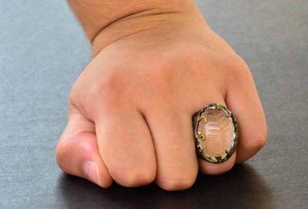 Gerçek Kristal Yüzük, Orta Doğu Desenli Ayar Gümüş Erkek Yüzüğü