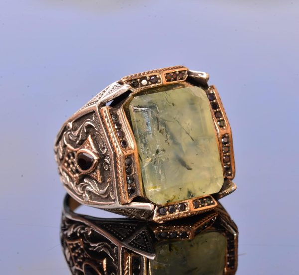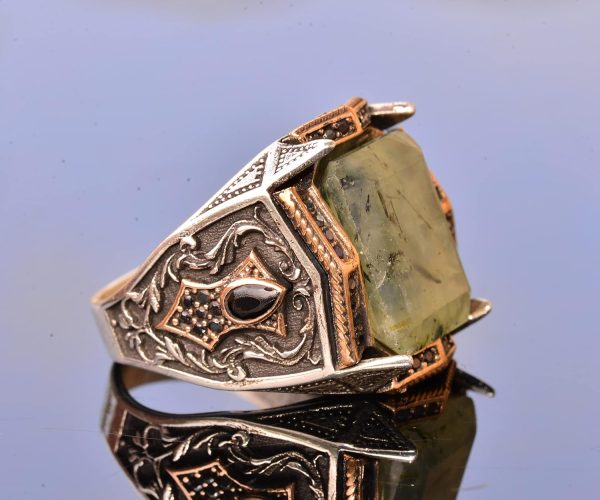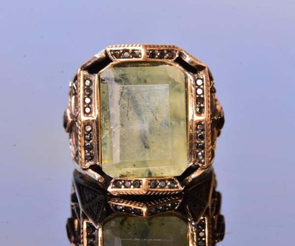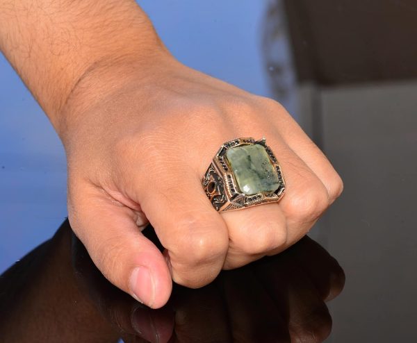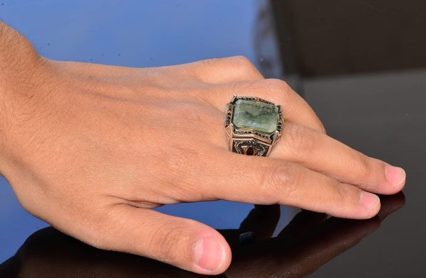 Gerçek Prehnit Yeşim Taşı Yüzük – Ayar Gümüş Erkek Bant Yüzüğü