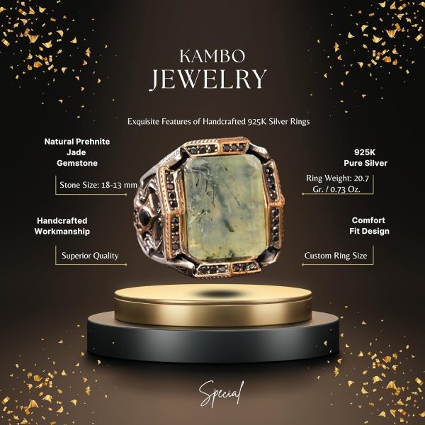 Gerçek Prehnite Jade Taş Yüzük, 14.50 Karat – Gümüş Erkek Bant Yüzüğü