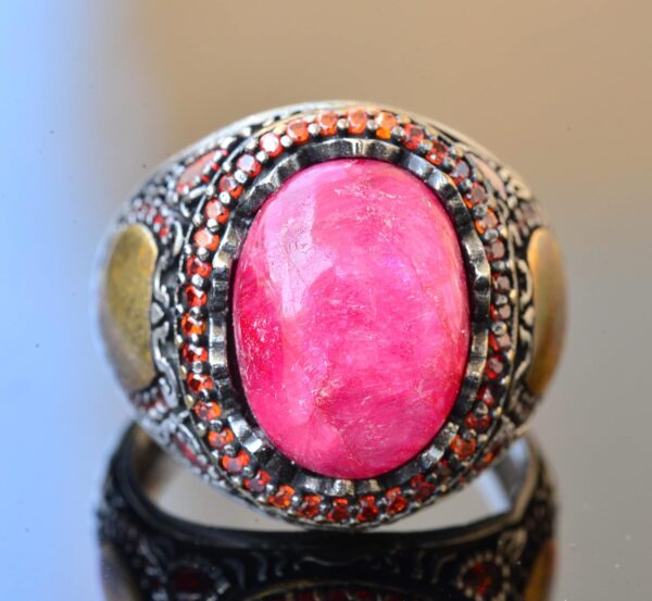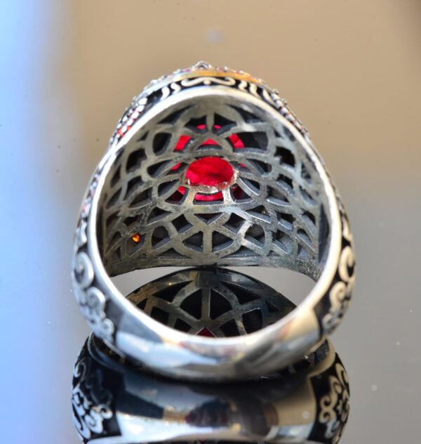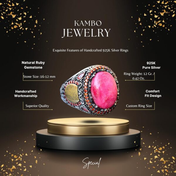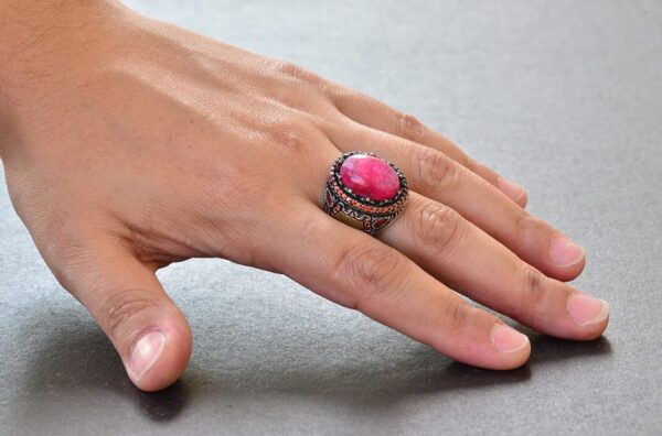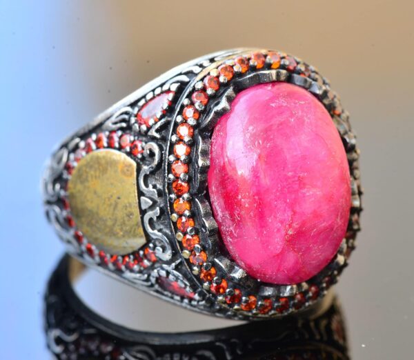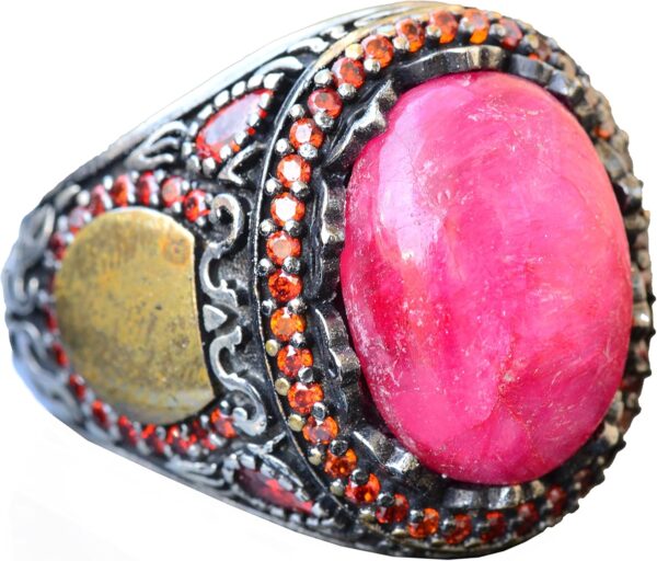 Gerçek Yakut Taşlı Yüzük – Vintage Tarzı 925 Ayar Gümüş Erkek Yüzüğü