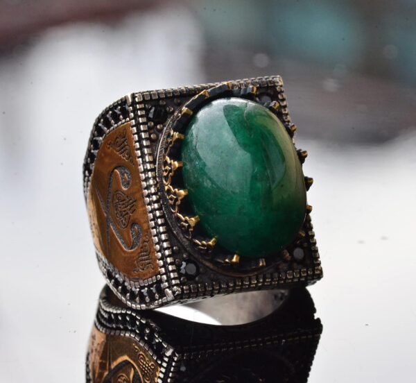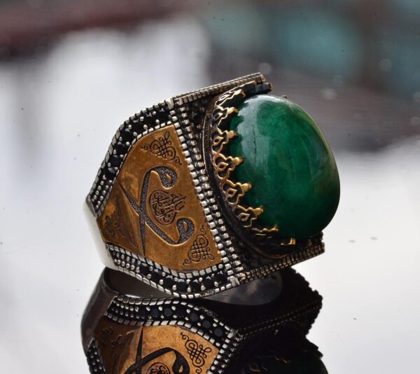Gerçek Yeşil Jade Taş Yüzük, İslami Hediye, Erkek Yüzüğü, Gümüş Yüzük